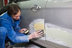 Шаг 6. Очистите окончательно поверхность с помощью растворителя. Только после этого автомобиль подготовлен к покраске. Привозя машину в гараж, оклеенную, залитую, отшлифованную и очищенную, вы можете рассчитывать на экономию от 50 до 70%. Но если вы намереваетесь продать автомобиль и хотите резко поднять его стоимость, остальное покраску лучше доверить профессионалам. А если, данное транспортное средство, предназначенное для вашего собственного использования или отдыха, вы можете действовать своими силами.