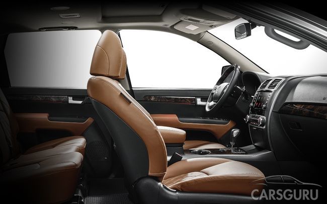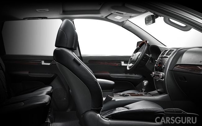 Все комплектации обновленного КИА Мохейв оснащаются светодиодными дневными ходовыми огнями, повторителями поворота в боковых зеркалах, а также дополнительным стоп-сигналом по центру. Внутри салона есть хромированные элементы, а передняя панель имеет вставки под дерево. Мультифункциональный руль, селектор трансмиссии с кожаной отделкой и подлокотник с подстаканниками — разработчики продумали не только внешность новинки, но еще и ее внутреннюю «начинку». При этом сиденья на заднем ряду можно отрегулировать по наклону спинки и сложить до уровня ровного пола. Для удобства водителя есть регулировка поясничного подпора сиденья.