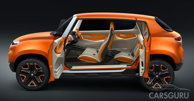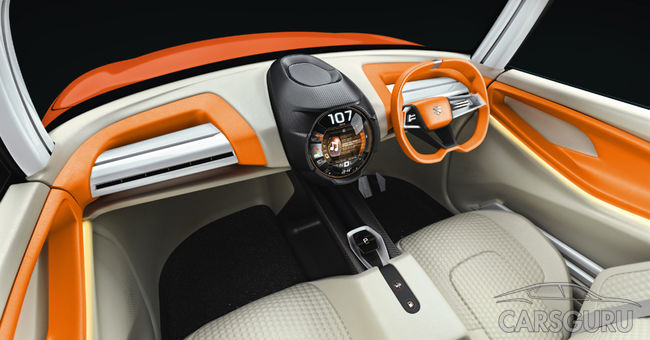 Что касается внутрянки, двери были закрыты, а через окна не пробьется даже луч света. Представить интерьер автолюбитель сможет только по сделанным картинкам. Что мы и видим, все кнопки, рукоятки и приборы теперь выведены на тачскрин. Располагаться он будет в центре приборной панели. Suzuki даже сделал кнопку открывания люка бензобака сенсорной. Выведена она между сидениями переднего ряда.