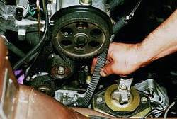 10. Заполните систему охлаждения двигателя, заливая охлаждающую жидкость в расширительный бачок до тех пор, пока ее уровень не установится у верхней кромки ремня крепления расширительного бачка. Заверните пробку расширительного бачка.