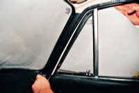 Переворачиваем ветровое стекло и закладываем окантовку в уплотнитель движениями из стороны в сторону.