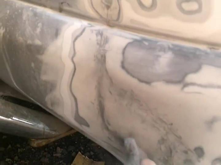 Далее, когда место повреждения предварительно будет обработано машинкой, воспользуемся наждачной бумагой Р240, которой протрем приблизительно на сантиметр дальше от шва и мест повреждения. Это будут границы области, на которую мы будем накладывать шпаклевку.