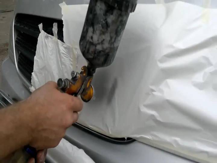 Лаком нужно покрывать на более низком давлении, чтобы не забрызкать всю машину.