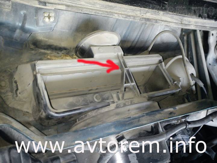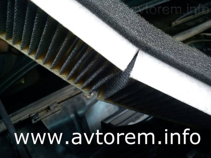 - получаем доступ к штатному посадочному гнезду салонного фильтра. Оно не очень приспособлено для замены фильтрующего элемента, так как имеет ненужную перегородку. Некоторые автолюбители советуют ее механически устранить, но мы в данном случае немного надрежем воздушный фильтр и легко установим его в посадочное гнездо;