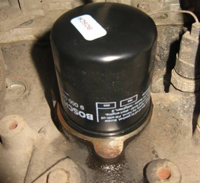 - в новый фильтр заливаем около 300 грамм свежего масла и устанавливаем его в посадочное гнездо;