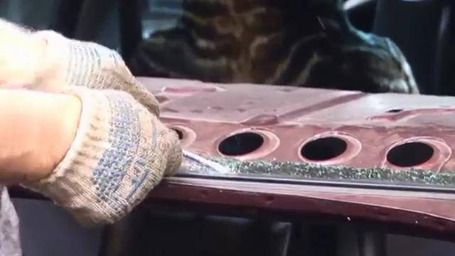 После освобождаем нижнюю часть того места, где крепилось стекло, чтобы мы могли полностью отсоединить остатки старого стекла. Старое стекло снималось для того, чтобы можно было поставить новое крыло.
