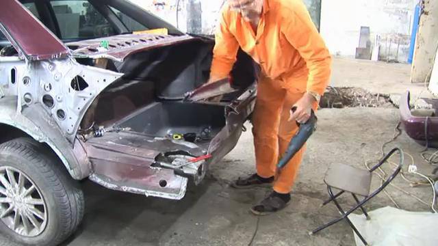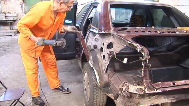 Перед началом вытяжки деформированных элементов кузова (крыла, проема заднего стекла и левого лонжерона), машину понадобится разобрать.