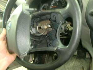 Сначала необходимо демонтировать неисправный блок. Для этого необходимо набор ключей, крестовая и плоская отвертки, ветошь. Перед ремонтом необходимо отсоединить аккумулятор (его отрицательный полюс) и выставить колеса прямо.