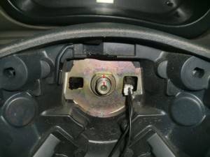 Следующим этапом является удаление подрулевых переключателей. Для этого отключаем все штекеры подключения проводов и шин от приборной панели. Также снимаем накладку, которая выключает звуковой сигнал, приложив усилие на себя. Отключаем от накладки выключателя штекеры двух проводов.