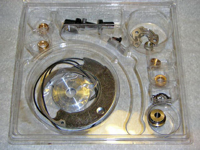 - Про комплект для ремонта турбокомпрессора мы уже писали, подразумевается, что он уже у вас есть. В случае шатания номинальных вкладышей надо немного поработать с валом, его необходимо проточить и провести балансировку. В большинстве случаев в ремонтном комплекте находятся вкладыши различных размеров, их придется вычистить и нанести масло.