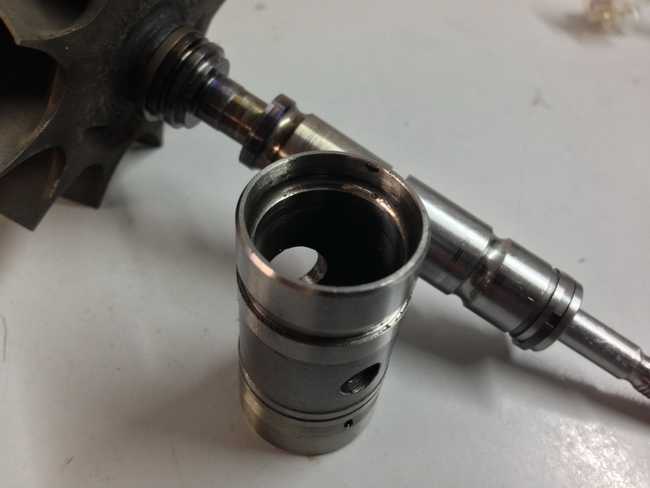Объяснить это достаточно просто. Диаметр втулки выбирается такой, чтобы между ней и улиткой оставалось небольшое расстояние, позволяющее в процессе работы возникать масляной пленке, почти такой же, какая образовывается в зазоре между втулкой и валом. Скорость вращения втулки приблизительно в два раза меньше скорости вала, а пара масляных пленок позволяет удачно амортизировать неравномерное давление выхлопа на ротор турбокомпрессора.