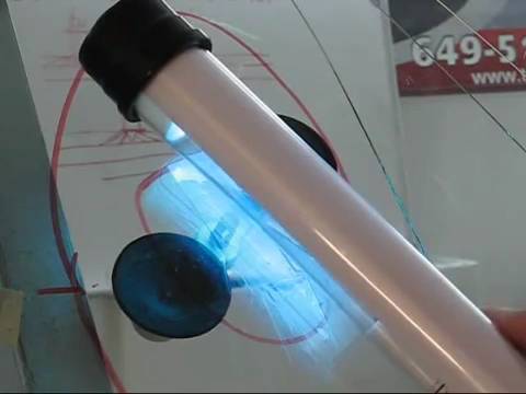 Как уже говорилось, для работы понадобится УФ-лампа. Используется для полимеризации дефекта. Кнопка включения размещена наверху. Работать может от обычного прикуривателя или преобразователя на 220В.