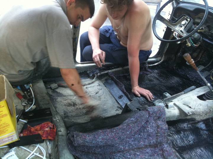 Начинать надо с шумо и теплоизоляции, которые положительно влияют на климат внутри салона – летом не так жарко и шумно, а зимой – гораздо теплее. Надо только изоляционные материалы хорошо закрепить, чтобы они вместе с обивкой не свалились вам на голову при первом серьезном скачке автомобиля. Шутка. Правильно будет обклеить изоляционным материалом не только крышу, двери автомобиля, но и пол.