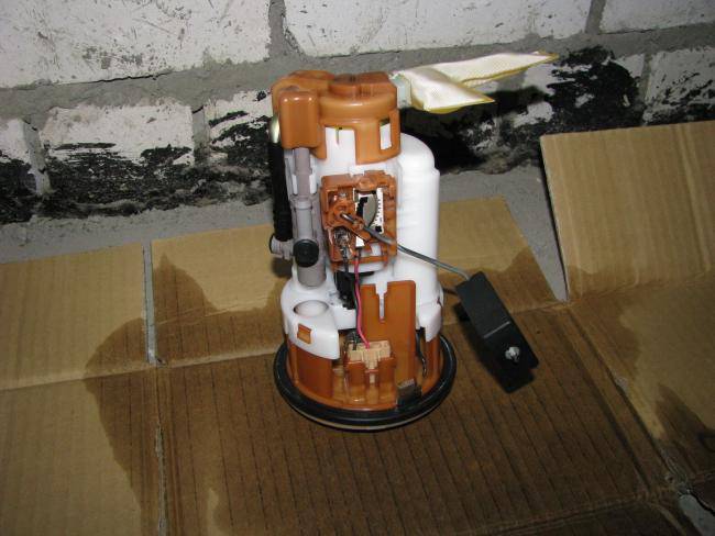 Это вид вынутого насосного блока (черный поплавок показан внизу)