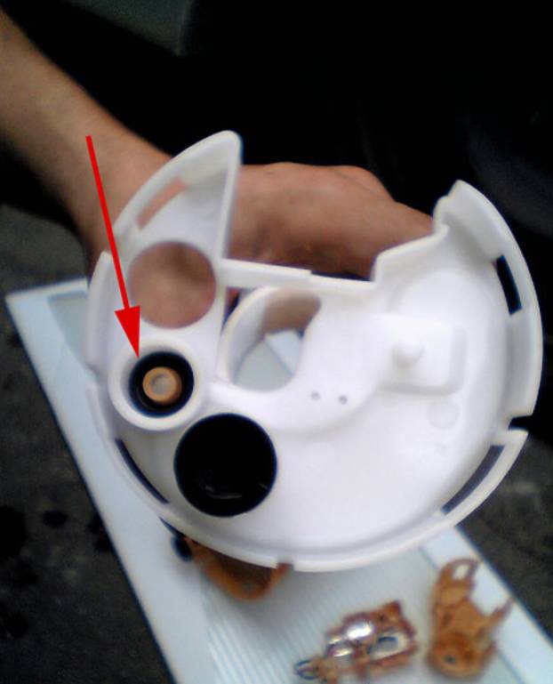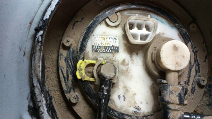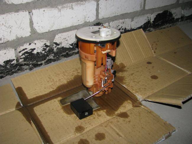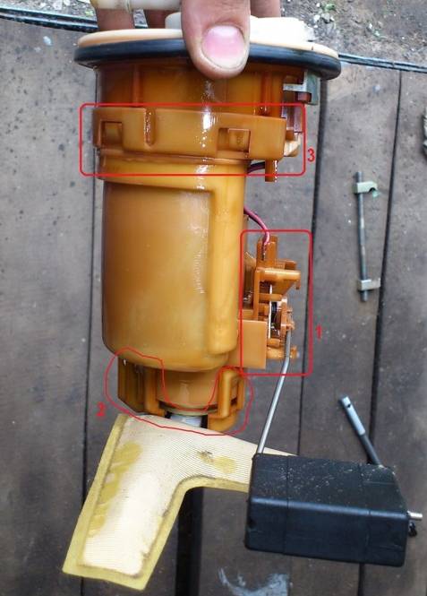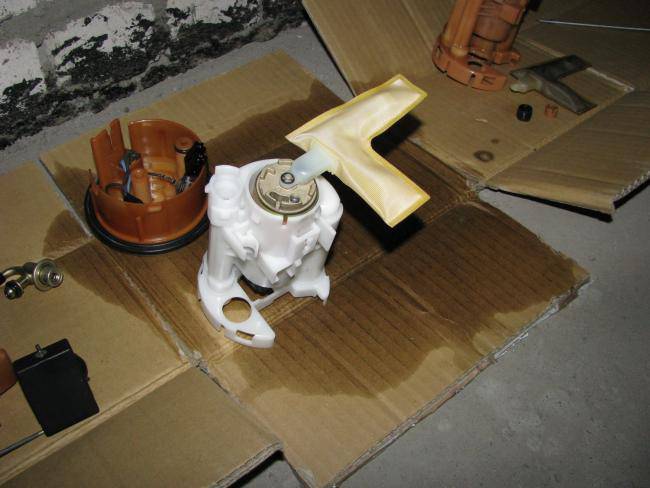Для извлечения насоса отвинчиваются восемь болтов скобы крепления. Насос извлекается с аккуратностью, не повреждая тяги поплавка (датчика топлива) или его самого.