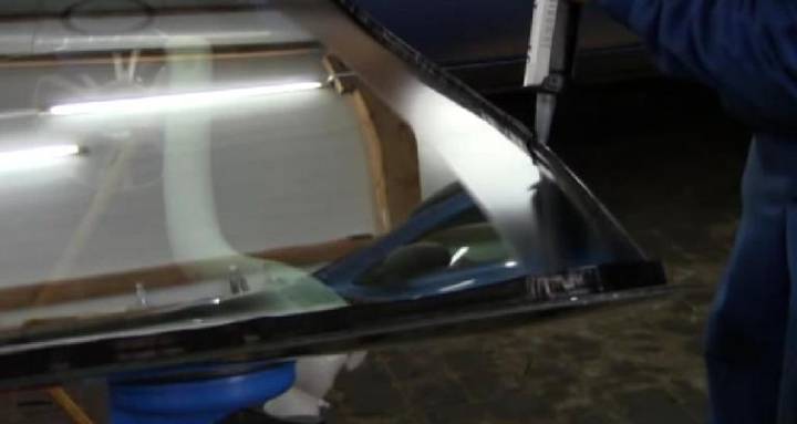 При замене клееного стекла его необходимо обезжирить перед установкой на клей. Далее устанавливаем молдинг, наносим специальный состав – праймер. Далее можно ровным слоем наносить клей по всему периметру стекла. Устанавливаем лобовое стекло в рамке, и фиксируем его от сползания.