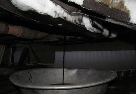 Пробка для слива откручивается через отверстие в защите картера. Далее подставляется тара, рассчитанная на принятие не менее пяти литров масла, поскольку объем его в моторе – 4,3л. Для слива максимального количества следует выдержать время не менее 20 минут, так как капли отработки самотеком еще долго удаляются из картера.
