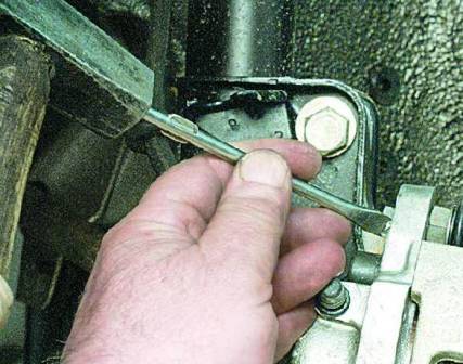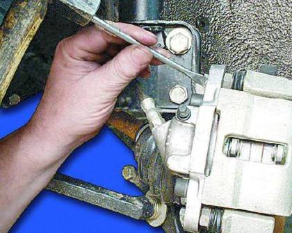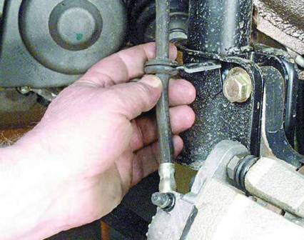 • отводится из специального кронштейна шланг подвода тормозной жидкости. Обязательно проведите осмотр шланга, и при наличии трещин, произведите замену;