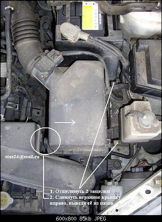 - отстёгиваются две пружинные защёлки крышки короба воздушного фильтра, убирается крышка;